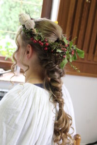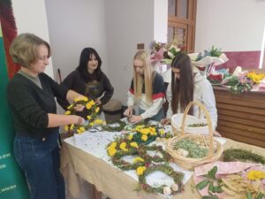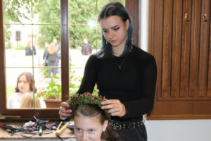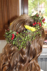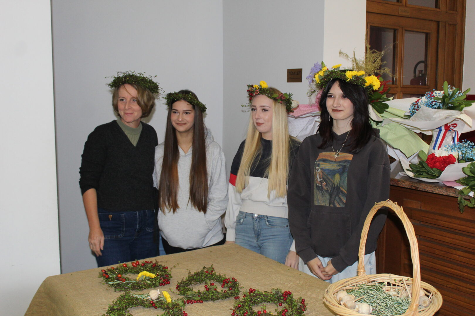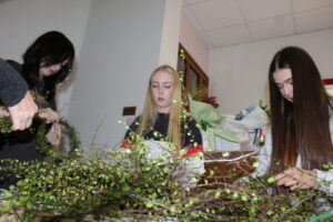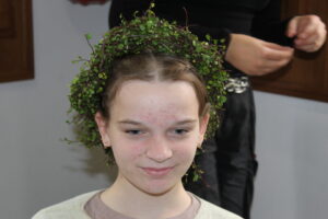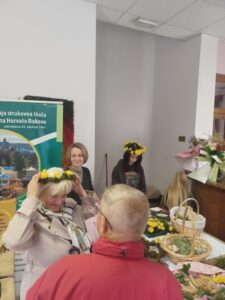 U okviru Malog srednjovjekovnog sajma u Đakovu, 3. listopada, Tanja, Sara i Laura, učenice 2. razreda cvjećara za posjetitelje su održale cvjetnu radionicu. Izrađivale su cvjetne vjenčiće za glavu. Vjenčići su poslužili kao ukrasni dodaci za srednjovjekovne frizure koje su izrađivali učenici frizeri iz Srednje strukovne škole Antuna Horvata Đakovo. Osim toga, vjenčićima su se okitili i posjetitelji sajma. IZVOR: Kornelija Sabolek.
