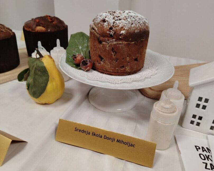 Učenice Korina Bajinac i Petra Golub, su s nastavnicom Ivanom Pleša, sudjelovale u Međunarodnom školskom projektu SSŠ A. Horvata u Đakovu 17.12. pod nazivom “Panettone s okusom mog zavičaja”. Učenice su prigotovile slatki talijanski kruh porijeklom iz Milana koji se najčešće pripremao u Božićno vrijeme. Učenice su talijanskom slatkom kruhu dodale naše domaće namirnice poput tikve, mrkve, suhih šljiva, grožđica, orasa i lješnjaka. Kako bi zadržale mediteranski štih, dodale su ribanu limunovu i narančinu koricu, sok od naranče i limuna te ušećerenu narančinu koricu. Cjelokupni senzorni doživljaj obogatile su kreativnom kremom od dunja, mušmula-već pomalo zaboravljenih voćaka, mascarpone sira i slatkog vrhnja te kremom od bijele čokolade. Učenice su izvrsno predstavile našu školu i svoj slastičarski uradaka. Osim naše škole u projekti su sudjelovale škole iz Đakova, Kaštel Štafilića Nehaj, Slavonskog Broda, Osijeka, Subotice i Kiseljaka (BiH). IZVOR: Ivana Pleša, nastavnica.