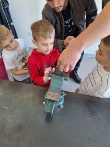 Nakon toga djeca su imala priliku odraditi razne poligone u nastavno športskoj dvorani sa učenicima 3.SRT i nastavnikom Dinkom Puljićem te su nakon toga posketili radionicu strojarstva i automehaničarsku radionicu gdje su ih dočekali i proveli nastavnici Tin Samuel Purgar i Ivan Zetović. IZVOR: Dinko Puljić